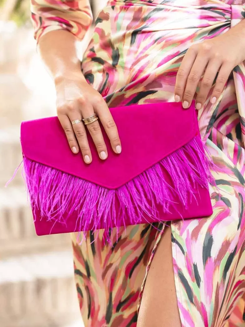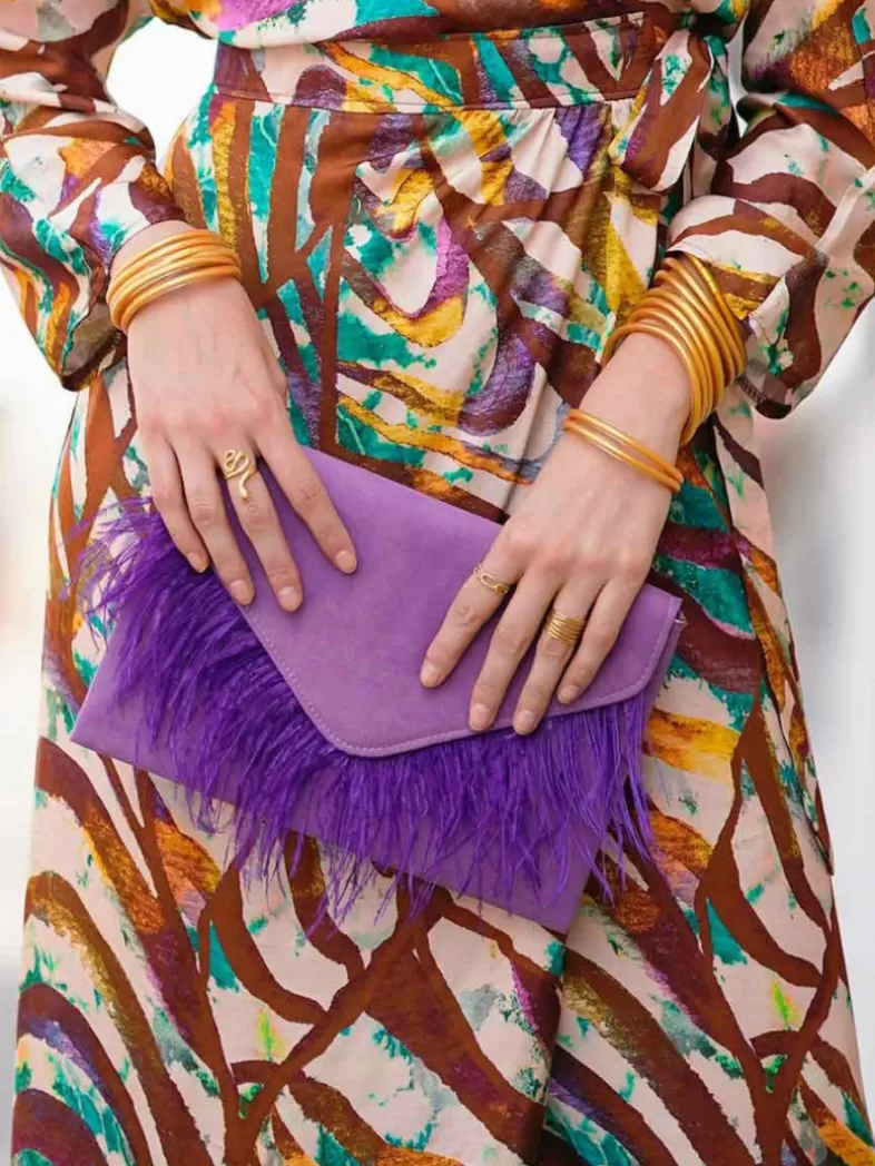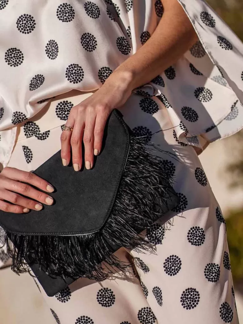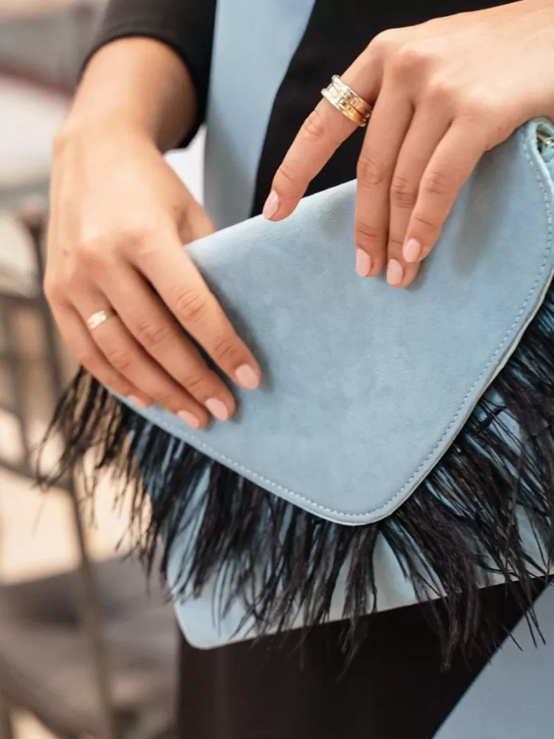 Nous savons qu`il est très important pour vous de garder vos essentiels en sécurité lors d`une journée clé, c`est pourquoi nous vous proposons notre Pochette Plume, une pochette de fête avec laquelle vous ne perdrez pas votre élégance.`