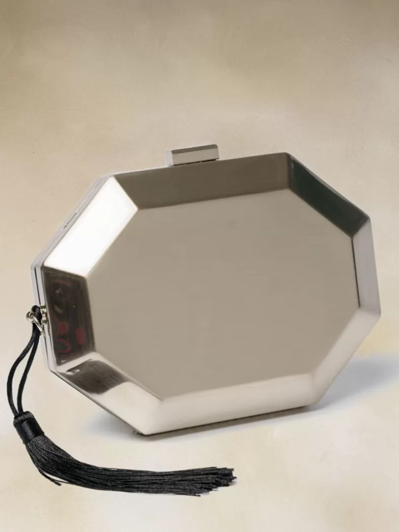 Le port de la pochette parfaite est toujours un plus dans un look d`invité. Notre Pochette octogonale est un must-have que tout le monde devrait avoir dans sa garde-robe. ` Cette Pochette est l`accessoire parfait pour être l`invitée parfaite et vous pouvez également l`utiliser pour aller à fête n`importe quel week-end avec vos amis. Cette Pochette est l`accessoire parfait pour être l`invitée parfaite et vous pouvez également l`utiliser pour aller à fête n`importe quel week-end avec vos amis. `Ce petit sac est fait de métal, est un sac complètement rigide et est disponible en or et en argent. Il est doté d`une fermeture à clic sur le dessus et d`un pompon noir en fils de soie sur le côté. Il est également doté d`une fine chaîne en métal qui permet de le porter à l`épaule. ` Qu`est-ce qu`on peut demander de plus ?